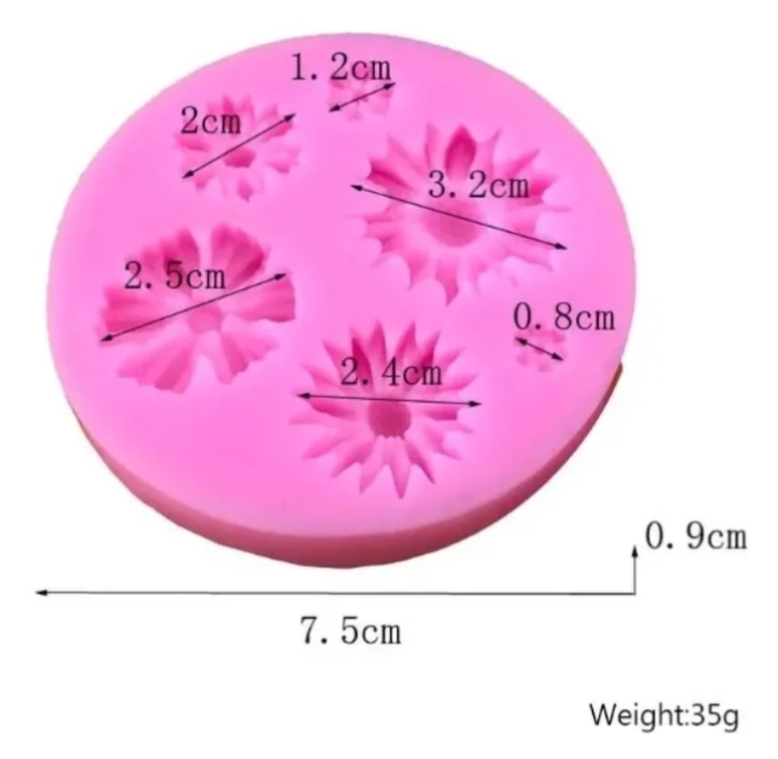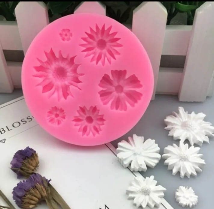 Molde en silicona con diseño de margaritas y tamaños variados, ideal para decorar todo tipo de tortas, cupcakes y galletas, velas, jabones, bisutería,resina, etc